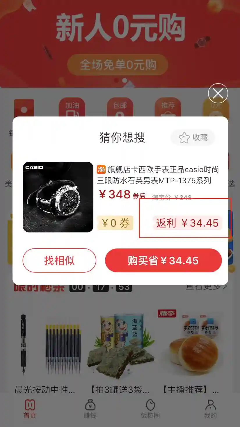 每日饭粒能得到的返利为:34.45元(返现是以现金的形式哦!)