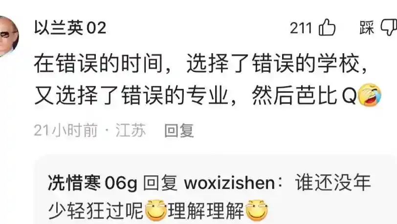 只是家长愿意拿更贵的学费,才得以读本科,不然估计也会滑档到专科水平。现在找的工作周围同事学历不高,有着现实原因。也许之前就高估了自身的实力。
