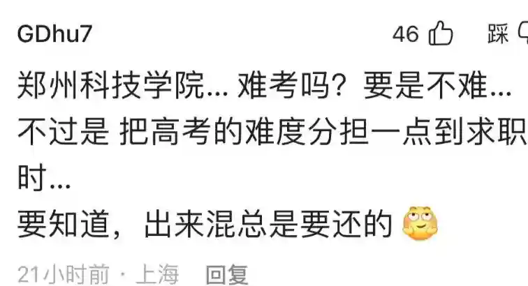 早知如此何必为了比专科水平的同学多考200分,补那么多课、花更多时间苦苦刷题。而且,郑州科技学院是民办大学,学费比普通公办院校贵。