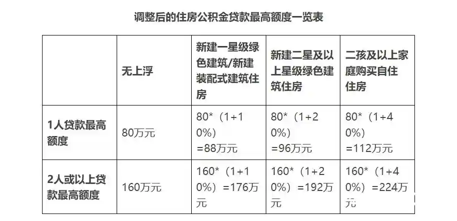 具体来看,使用住房公积金贷款购买自住住房的,一人申请贷款的最高额度调整至80万元,两人或两人以上购买同一套自住住房共同申请贷款的最高额度调整至160万元。