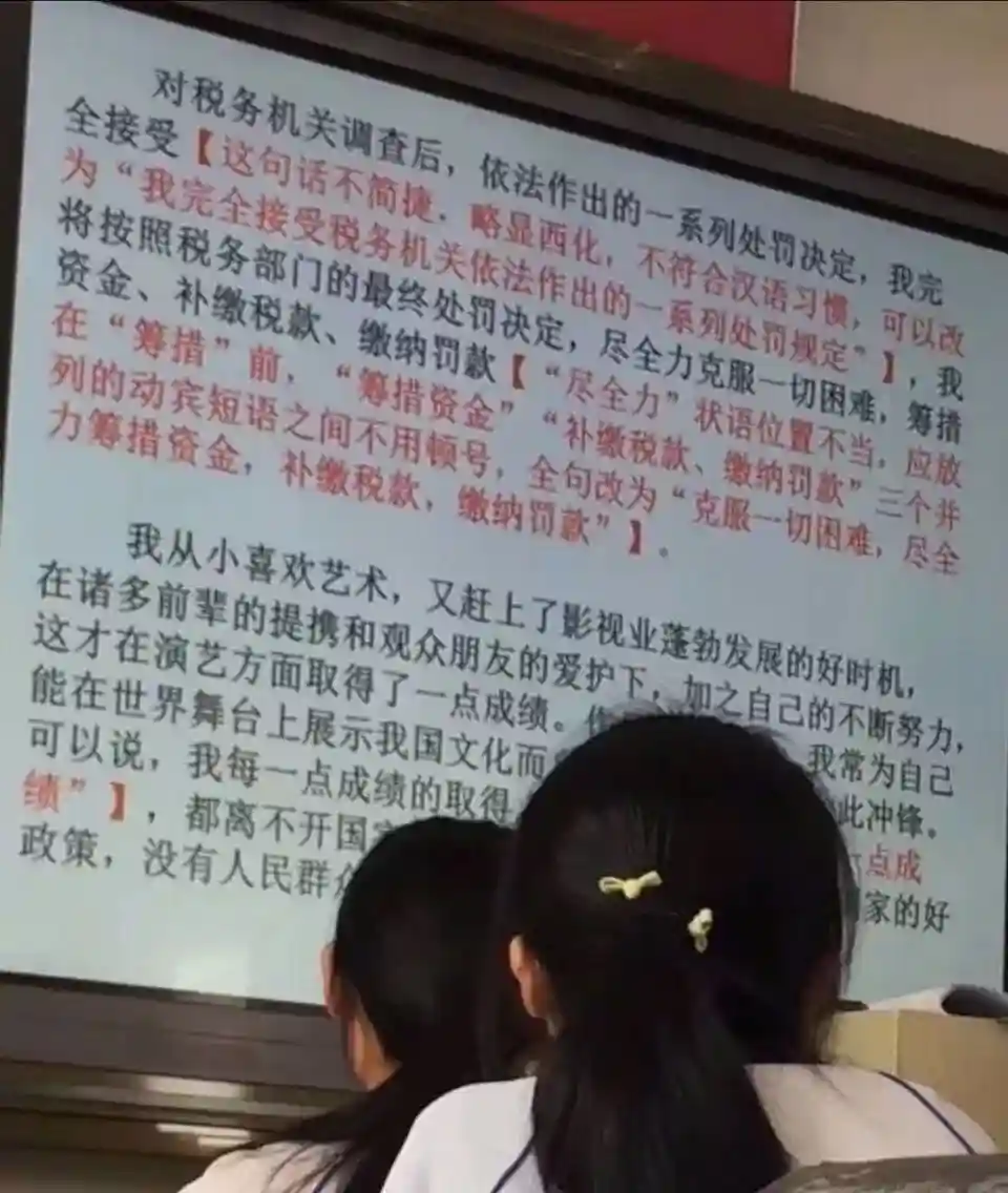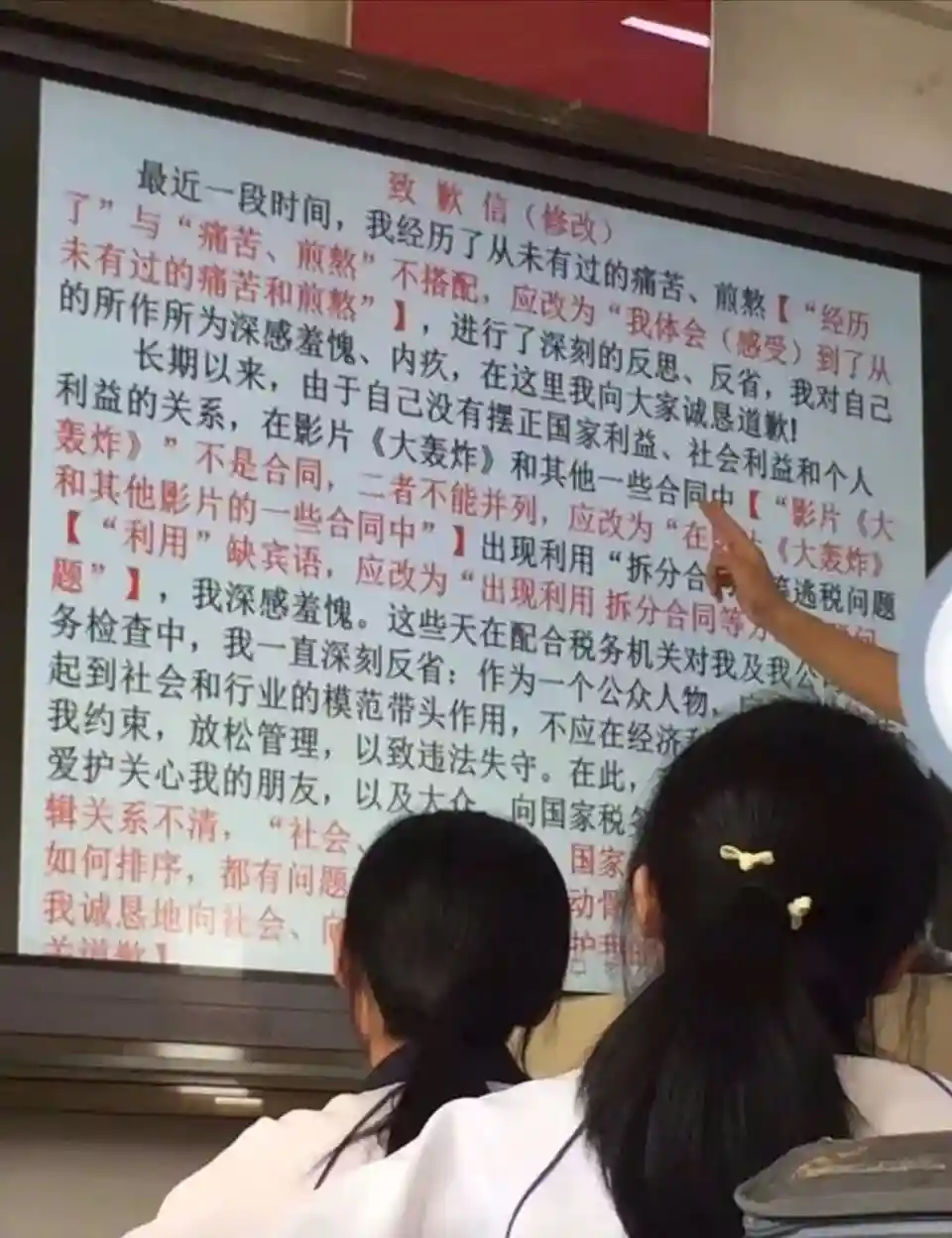 “网上曝光的这篇修改版致歉信,绝大部分改动都是对的,个别地方如果要求放宽一点,不改动也说的过去。”他直言,范冰冰这个致歉信中涉及到的语病都很典型,很适合做课堂教学模板,对学生来说很有教学意义。张老师告诉记者,平时课堂上,他也会挑一些报纸中曾出现的语病作为反例,来训练学生改病句的能力。“类似这种形式会让学生感觉到,其实语文能力和我们紧密相关,生活中处处有语文。”