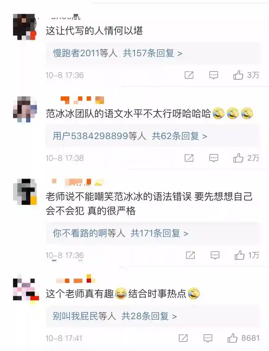 而对于“范冰冰致歉信成为课堂教学反例”,张老师也发表了自己的看法。他认为,公众人物的母语感消失对青少年会造成一定的负面影响,作为公众人物应当有公众意识,面向公众发布的内容最好请专业的人员来把关。