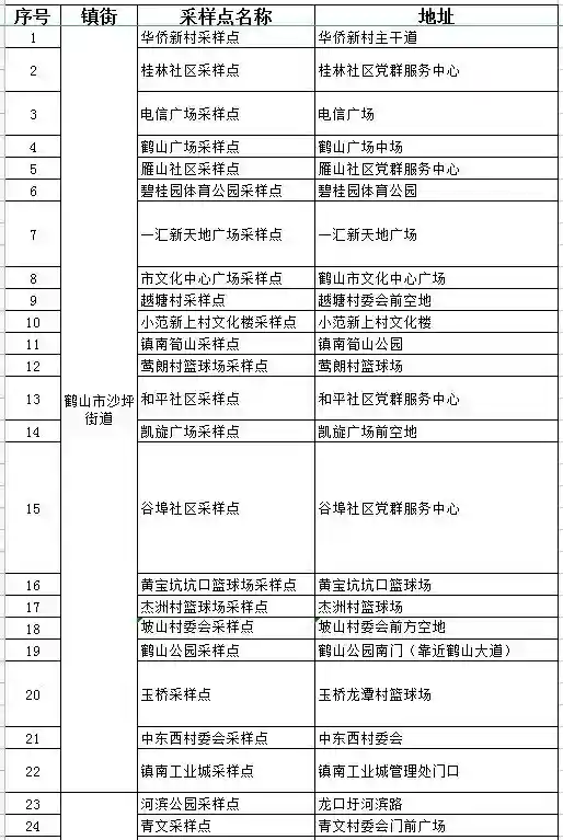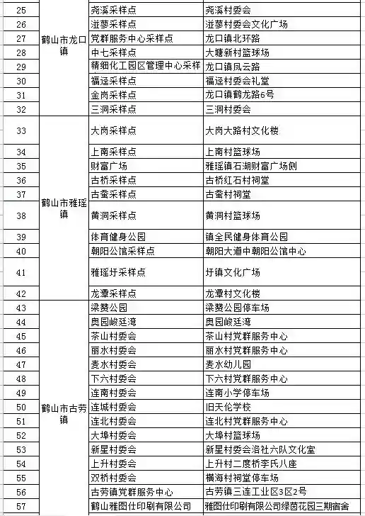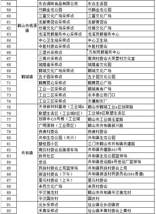 鹤山市固定采样点信息