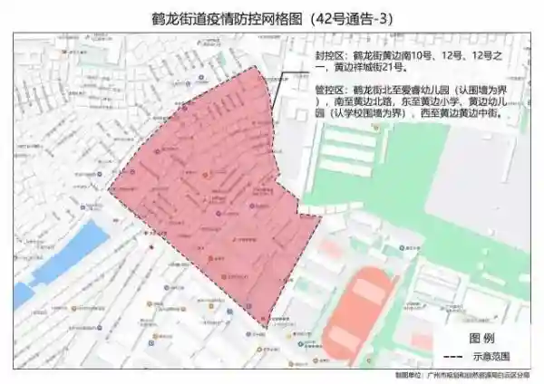 今日,广州市白云区发布最新通告,新增鹤龙街、嘉禾街、永平街部分区域为封控区、管控区、防范区。详情如下: