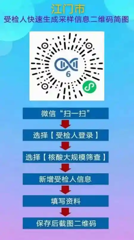 四、前往采样点时,请佩戴好口罩、携带手机,提前扫葵花码(附图),并录入个人信息生成个人检测二维码(长期有效),并截图保存,以便采样现场的快速高效查验。老人、小孩没有手机的,可在家人手机账号下添加生成其二维码。