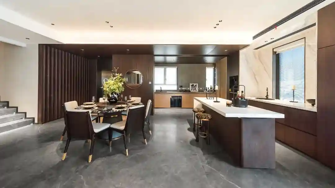 中西双厨的设定,餐厅可同时放置中式大圆桌、西式岛台,让家庭宴请、朋友聚会,都能够从容应对。