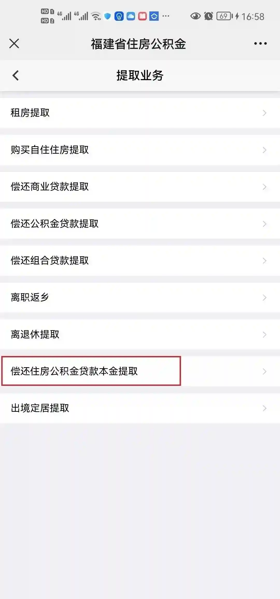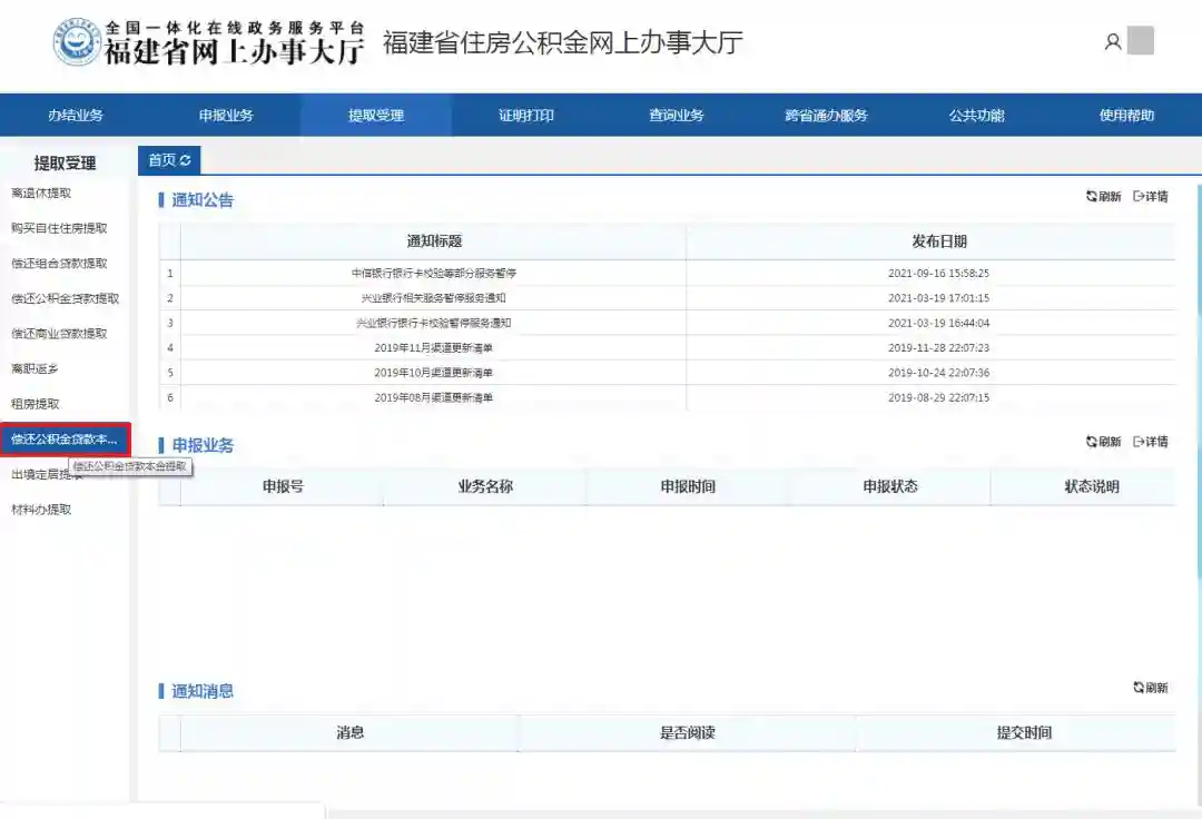 福建省住房公积金网上办事大厅——个人业务办理——提取受理——偿还住房公积金贷款本金提取