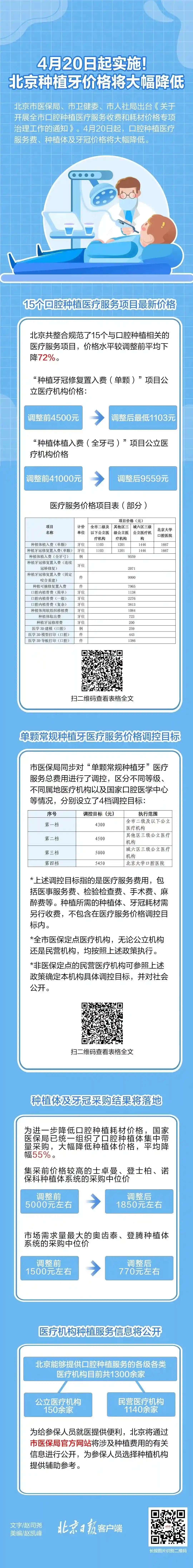 4月20日起,北京口腔种植服务费平均减少72%