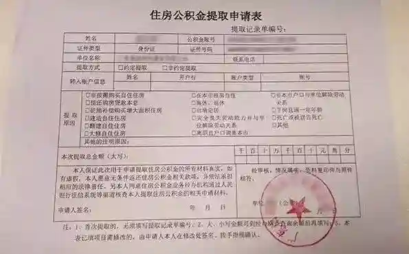 4、公积金提取申请表1份(可以在公积金网站下载,不过,一般公司行政部/人事部都有打印好的,这里需要填写好相关资料,提取金额先不要填写,可到银行咨询后再填写。假如是夫妻两个人均申请提取,在提取份额那里也最好先不要填写,注意,该申请表还要盖上单位的公章才能有效。)